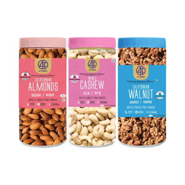 41 foods believes that our reputation must be based on the QUALITY of our products. Almonds Cashews Walnuts are one of the most nutritious of all dry fruits. We use the finest quality of Cashews Almonds Walnuts which are hand-picked. It is delicious in taste, acts as the best buddy in the morning breakfast and as an anytime snack. No matter what festival you are celebrating in your house, preparing dessert is a must. But without Walnuts Almonds Cashews, these desserts won’t taste the same.